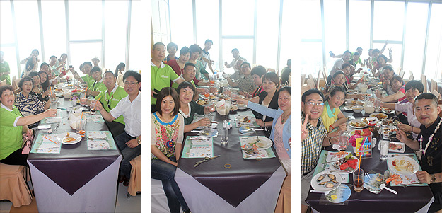 曼谷玉葉太空酒店建筑高度309米,總樓層數(shù)為88 層,是市內(nèi)最高的地標(biāo)性建筑。綠之韻精英們來(lái)到位于第76層BAIYOKE SKY旋轉(zhuǎn)餐廳享受?chē)?guó)際自助餐。這里的自助餐包含各國(guó)風(fēng)味,品種繁多,鮮美的海鮮、綿蜜的甜品、豐富的熱帶水果……精英們一邊享用美食,一邊360度觀(guān)賞曼谷市容,1500平方公里的美景盡收眼前,妙不可言!