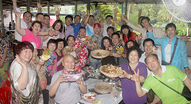 東芭樂(lè)園,占地面積1600多畝,是一個(gè)泰式鄉(xiāng)村風(fēng)格的休閑兼度假公園。園中有人工湖,水光瀲滟,小河繚繞于亭臺(tái)樓閣之間,樹(shù)木蔥籠,鳥(niǎo)語(yǔ)花香,景色如畫(huà)。園中設(shè)有文化村,是集中展示泰國(guó)民族文化的場(chǎng)所。園內(nèi)節(jié)目三大部分:一是泰國(guó)的民俗表演,二是大象表演,三是植物園。民俗歌舞很質(zhì)樸、很地道,表演者就是村寨中人;大象表演格外精彩。綠之韻精英們或看著表演,或與大象合影,或飲一口冰鎮(zhèn)的椰汁,各自用不同的方式享受著度假的閑適和快樂(lè)。