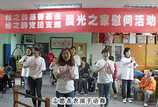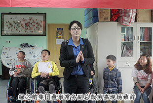 在對中心電腦課程、康復課程、語言課程等進行了解后,一行人來到一樓大廳,看望了經(jīng)過專業(yè)治療、康復訓練,已經(jīng)能說能唱、思維接近正常孩子的兒童們??吹街驹刚叩牡絹?,孩子們也開心地用發(fā)音不是很準的語音和大家打起了招呼,并為現(xiàn)場表演起精心準備的自編自演的舞蹈來??粗⒆觽兘?jīng)過訓練,協(xié)調(diào)而充滿韻律的舞蹈,以及臉上所透露出的幸福而滿足表情,勞嘉會心地笑了。綠之韻的志愿者們也表演了節(jié)目:手語舞“讓愛傳出去”,精彩的手語舞讓現(xiàn)場一下安靜起來。爾后,ICC長沙區(qū)域辦公室主任李明對綠之韻集團慈善基金與綠之韻黨團組織表示了衷心感謝。綠之韻集團董事常務副總裁,綠之韻慈善基金常務理事長勞嘉隨后也簡短致辭,為孩子們送上關懷與祝福。