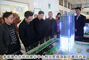 考察組一行首先參觀了綠之韻集團辦公大樓。企業(yè)文化展區(qū)、產品展示廳、現代化科技展示中心和五星級國際大酒店沙盤……瀏陽市人大常委會常務副主任孫建科、秘書長唐林軍等領導邊走邊看,邊聆聽邊詢問,贊嘆之聲不絕于耳。期間,胡國安董事長還就產品理念、市場運營、產學研合作、黨建工作、公益慈善和未來規(guī)劃等相關情況向考察組一行作了匯報,考察組一行予以高度肯定和贊許。