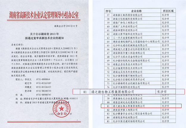 近日,從湖南省科技廳傳來喜訊。根據(jù)《高新技術(shù)企業(yè)認(rèn)定管理辦法》(國科發(fā)火〔2008〕172號)和《高新技術(shù)企業(yè)認(rèn)定管理工作指引》(國科發(fā)火〔2008〕362號)有關(guān)規(guī)定,經(jīng)企業(yè)申報、地方推薦和專家評審,綠之韻集團(tuán)順利通過國家科技部2013年高新技術(shù)企業(yè)復(fù)審,再次榮膺國家科技部“高新技術(shù)企業(yè)”榮譽(yù)稱號。