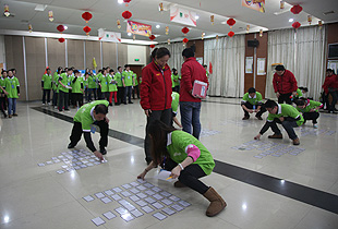 培訓(xùn)的第一天,為了讓大家快速進入訓(xùn)練營狀態(tài),零和(中國)體驗式培訓(xùn)機構(gòu)為大家?guī)Я司实耐卣菇坛?。拓展特?xùn)教練們首先進行了分組,全體員工被分成十隊——“一馬當(dāng)先隊”、“先鋒二號隊”、“悍馬隊”、“蛟龍隊”、“超越隊”、“兵利隊”、“野狼隊”、“巔峰隊”、“寶馬隊”和“神馬隊”。每個隊選舉產(chǎn)生一個隊長,自編口號?!吧耨R一出,都是浮云”的口號,彰顯自信,鋒芒畢露;“一馬當(dāng)先,綠韻最棒”的口號鏗鏘有力,霸氣十足;“兵利兵利,無往不利”的口號,彰顯決心,激情澎湃……通過組建隊伍,明確了組織架構(gòu),為高效、有序地進行團隊項目做好鋪墊,初步形成了良好的團隊氛圍。緊接著,十隊學(xué)員精神抖擻,士氣高昂,摩拳擦掌,先后進行了“大海撈針”、“七巧板”、“沖出迷霧”等多項團隊協(xié)作項目,明確了團結(jié)合作、目標(biāo)分工、角色定位和執(zhí)行力的重要性,極大增強了全員對綠之韻的歸屬感和向心力。同時,本次培訓(xùn)營還安排了消防、安全知識及演練項目,進一步增強了綠之韻全體員工的安全意識和自防自救能力,有效推進了消防工作全員化。