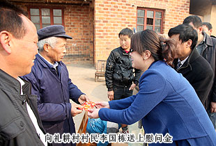 在禮耕村村長李強(qiáng)、黨委書記蘇典順的陪同下,慰問組一行首先來到村民李國棟家。李國棟一家4口人,妻子和兒子、媳婦均有殘疾,家中只有他一個(gè)勞動(dòng)力,生活十分拮據(jù)。當(dāng)李國棟接到慰問小組一行送上的慰問物資和慰問金后感動(dòng)的淚光閃爍,他激動(dòng)地說:“我以前聽說過綠之韻,都說綠之韻董事長胡國安是好人,綠之韻有個(gè)好團(tuán)隊(duì)。你們這樣照顧我,我太感謝了!”