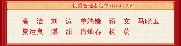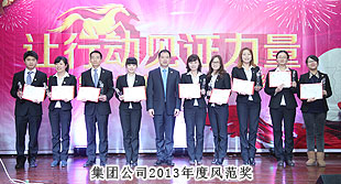 會議最大亮點當屬表彰環(huán)節(jié)。時間記錄了腳步,榮譽證明了努力,2013年表彰大會共設(shè)置“季度優(yōu)秀集體”“年度優(yōu)秀員工”“年度優(yōu)秀基層管理干部”“年度優(yōu)秀中層管理干部”“最佳成長獎”“最佳指導(dǎo)老師獎”等多個獎項。榮譽證書和水晶獎杯記載著榮譽,鐫刻著感動。表彰不僅是一份嘉獎,更是一次次回顧,回顧每一次突破與飛躍,為明天的奮斗添加更多的信心和力量!