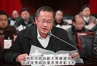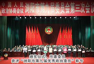 2014年1月13日,中國(guó)人民政治協(xié)商會(huì)議瀏陽(yáng)市第九屆委員會(huì)第三次會(huì)議勝利閉幕。期間,來(lái)自各條戰(zhàn)線的委員們聚集一堂,圍繞促進(jìn)瀏陽(yáng)科學(xué)發(fā)展、跨越發(fā)展積極建言獻(xiàn)策,認(rèn)真履行政治協(xié)商、民主監(jiān)督、參政議政的職能。本次會(huì)議應(yīng)到委員365人,因事因病請(qǐng)假6人,實(shí)到委員359人,符合《政協(xié)章程》規(guī)定。