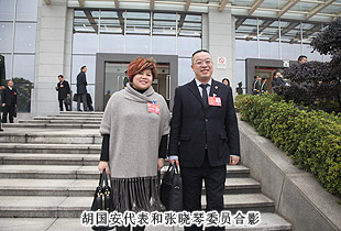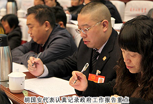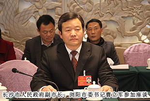 開(kāi)幕式后,中共長(zhǎng)沙市委副書(shū)記、長(zhǎng)沙市人民政府市長(zhǎng)胡衡華一行來(lái)到各地區(qū)代表團(tuán),與出席市十四屆人大二次會(huì)議的代表們一起審議政府工作報(bào)告,聽(tīng)取代表們的建議和意見(jiàn)。在瀏陽(yáng)市代表團(tuán)分組審議座談會(huì)上,就2014年長(zhǎng)沙經(jīng)濟(jì)社會(huì)如何保持平穩(wěn)快速發(fā)展,代表們紛紛獻(xiàn)計(jì)獻(xiàn)策。中共長(zhǎng)沙市委副書(shū)記、長(zhǎng)沙市人民政府市長(zhǎng)胡衡華,長(zhǎng)沙市人大常委會(huì)副主任黃佳惠,長(zhǎng)沙市人民政府副市長(zhǎng)、瀏陽(yáng)市委書(shū)記曹立軍等市領(lǐng)導(dǎo)成員仔細(xì)傾聽(tīng)每位代表發(fā)言,認(rèn)真記錄,還不時(shí)一起探討。胡國(guó)安代表在審議時(shí)針對(duì)胡市長(zhǎng)在講話中提到的“全力打造瀏陽(yáng)河生態(tài)經(jīng)濟(jì)示范區(qū),把瀏陽(yáng)經(jīng)開(kāi)區(qū)培育成新的千億園區(qū)”和“加快移動(dòng)電子商務(wù)基地建設(shè),促進(jìn)電子商務(wù)加速發(fā)展,爭(zhēng)創(chuàng)國(guó)家電子商務(wù)示范基地”的兩個(gè)觀點(diǎn),他結(jié)合園區(qū)、綠之韻集團(tuán)實(shí)際,詳盡闡述了綠之韻集團(tuán)的生態(tài)經(jīng)濟(jì)發(fā)展思路,以及在瀏陽(yáng)河與撈刀河畔建立生態(tài)休閑區(qū)、建設(shè)五星級(jí)生態(tài)酒店和綠之韻連鎖酒店、發(fā)展湖南黑茶產(chǎn)業(yè)、打造藍(lán)莓產(chǎn)業(yè)鏈等未來(lái)八大發(fā)展規(guī)劃。胡衡華、黃佳惠、曹立軍等省市領(lǐng)導(dǎo)認(rèn)真聆聽(tīng)胡國(guó)安代表的發(fā)言,邊聽(tīng)邊記,邊記邊問(wèn),對(duì)發(fā)言中提及的思路和做法表示高度的肯定。由于胡國(guó)安代表長(zhǎng)期扎根基層,服務(wù)群眾,盡職履責(zé),深入調(diào)研,連續(xù)兩屆擔(dān)任人大代表,所提交的議案均緊扣社會(huì)熱點(diǎn)和難點(diǎn),普遍反映比較強(qiáng)烈,長(zhǎng)沙市人民政府副市長(zhǎng)、瀏陽(yáng)市委書(shū)記曹立軍對(duì)此印象十分深刻。分組審議后,曹立軍副市長(zhǎng)立軍同胡國(guó)安代表進(jìn)行了面對(duì)面的親切交談。他向胡國(guó)安代表不久前獲評(píng)“長(zhǎng)沙市優(yōu)秀人大代表典型風(fēng)采人物”表示祝賀,希望胡國(guó)安代表進(jìn)一步發(fā)揮出人大代表參與決策、監(jiān)督協(xié)助、橋梁紐帶的作用,為長(zhǎng)沙全面推進(jìn)“六個(gè)走在前列”、率先建成“三市”、強(qiáng)力實(shí)施“三倍”、加快現(xiàn)代化進(jìn)程,作出更大的貢獻(xiàn)!