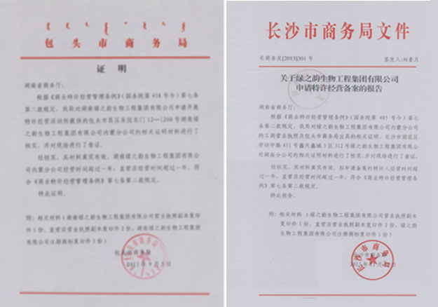 2013年12月26日,綠之韻生物工程集團(tuán)有限公司(以下簡(jiǎn)稱(chēng)綠之韻集團(tuán))正式獲得國(guó)家商務(wù)部的企業(yè)特許經(jīng)營(yíng)備案,備案登記號(hào)為:0430100711300045,網(wǎng)站信息查詢(xún): http://txjy.syggs.mofcom.gov.cn/manager/prosecute.do?method=add&id=3527302