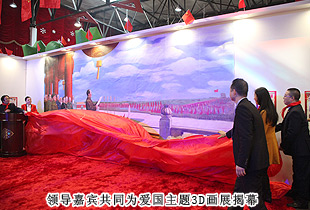 活動中,胡國安董事長、《毛澤東傳奇》作者龔一等共同為3D畫展揭幕,并認(rèn)真參觀了展館。展覽以3D魔幻藝術(shù)為表現(xiàn)手法,通過再現(xiàn)歷史、地域、人物、建筑、事件畫面,將波瀾壯闊的中國歷史、文化和中國革命、建設(shè)的宏大畫面系統(tǒng)重現(xiàn)。最令人關(guān)注的是“毛澤東傳奇”主題區(qū)域,20副展畫均是由《毛澤東傳奇》新書中的真實故事進(jìn)行繪制,再現(xiàn)偉人的豐功偉績。胡國安董事長接受湖南衛(wèi)視公共頻道采訪時表示:本次展會的創(chuàng)意更具通透性、觸摸感和震撼力,讓我們尤其是青少年兒童進(jìn)入真實的愛國主義歷史長卷,人在景中,與歷史融為一體,極具互動性、趣味性和藝術(shù)沖擊力。