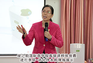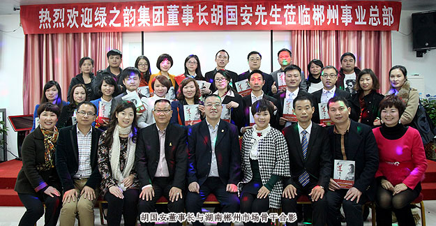 在湖南郴州市場新品推介會上,綠之韻高級經(jīng)銷商歐建梅作了“走進綠之韻”的精彩講演,綠之韻國際商學(xué)院培訓(xùn)部高級講師侯俊霞進行了綠之韻享居?活化凈水機的仔細(xì)講解和現(xiàn)場演示,綠之韻高級經(jīng)銷商黃翔為郴州市場伙伴們帶來了不同凡響的成功分享。胡國安董事長在大家熱烈的掌聲中蒞臨會議現(xiàn)場,激情洋溢地作了重要講話。他對郴州市場營銷伙伴的業(yè)務(wù)技能表示了肯定,深入闡述了公司發(fā)展規(guī)劃、企業(yè)品牌打造、天城網(wǎng)規(guī)劃與前景等方面的情況,并對郴州市場發(fā)展提出了指導(dǎo)性建議及幾點期許。明年,集團公司將陸續(xù)出臺一系列服務(wù)市場、扶持市場的有力政策和舉措,郴州市場營銷伙伴一定要統(tǒng)一指導(dǎo)思想、統(tǒng)一目標(biāo)指向、統(tǒng)一行動步伐,為實現(xiàn)所有綠之韻人的“中國夢,綠之韻夢”而奮力前行!胡國安董事長的親自到來,為郴州市場注入了強大的信心和不竭的動力。綠之韻郴州市場經(jīng)銷商們紛紛表示:一定不辜負(fù)胡國安董事長、公司的期望,齊心協(xié)力,竭盡全力,以市場的建設(shè)輻射積極帶動綠之韻郴州市場的快速發(fā)展,再鑄事業(yè)新輝煌!