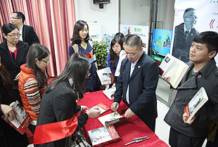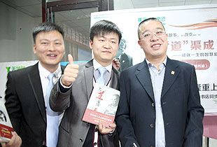 2013年11月28日,胡國安董事長參加完由湖南省發(fā)改委、湖南省商務(wù)廳、郴州、衡陽、永州三市人民政府主辦的“2013年首屆湘南國際承接產(chǎn)業(yè)轉(zhuǎn)移投資貿(mào)易洽談會”之后,不顧舟車勞頓,不辭辛勞,親赴湖南郴州市場一線考察指導(dǎo)工作,并應(yīng)邀參與最新力作《水道渠成》簽售活動。