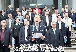 長沙市人民政府副市長、市公安局黨委書記、局長李介德發(fā)表了講話。李介德局長在講話中指出,按照公安部的統(tǒng)一部署,“警營開放周”活動期間,省市公安機(jī)關(guān)治安系統(tǒng)各部門警營、警隊、辦公場所將面向社會統(tǒng)一開放,邀請各界人士和人民群眾走進(jìn)警營,了解治安管理工作,暢通警民溝通聯(lián)系渠道。公安機(jī)關(guān)作為服務(wù)部門,今后還將進(jìn)一步敞開大門,廣泛傾聽群眾的意見,對群眾提出的不滿意事情、問題進(jìn)行整改,更好地為人民群眾服務(wù)。