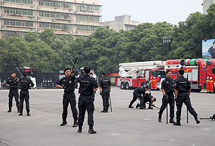 啟動儀式現(xiàn)場,中共湖南省委常委、政法委書記、省公安廳廳長孫建國宣布湖南省公安機(jī)關(guān)“規(guī)范執(zhí)法警營開放周”活動開始。孫建國書記、盛茂林副省長、胡國安董事長一行參觀了內(nèi)容豐富的活動展區(qū)。在裝備展示區(qū),與會人員參觀了各警種的現(xiàn)場執(zhí)法儀、移動警務(wù)通、警用服飾、槍械、單警裝備、警用車輛和消防裝備等。特警大隊隊員身穿特警服裝,全方位展示了特警隊員的颯爽英姿;治安大隊展示的各種槍械吸引了所有參觀人員。各展示臺民警耐心、細(xì)致講解了各種裝備的性能和作用,宣傳公安機(jī)關(guān)保護(hù)人民群眾的職責(zé)。在法律宣傳區(qū),除了展出全省公安機(jī)關(guān)執(zhí)法規(guī)范化建設(shè)成果、治安、禁毒、消防和交警等宣傳展板外,民警將大量宣傳法律法規(guī)、防范知識和執(zhí)法規(guī)范化建設(shè)成果宣傳畫冊等宣傳資料分發(fā)到與會人員手中,同時提供現(xiàn)場法律咨詢服務(wù)。接下來的警營開放周活動期間,全省公安機(jī)關(guān)將繼續(xù)開展系列豐富多彩的警營開放活動。