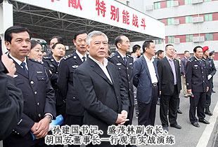 啟動儀式后,中共湖南省委常委、政法委書記、省公安廳廳長孫建國,湖南人民政府副省長盛茂林受邀與部分省市人大代表、政協(xié)委員、社區(qū)干部、知名企業(yè)代表、群眾代表舉行了座談。孫建國書記在與胡國安董事長交談時,用“忠誠履責(zé),無私奉獻(xiàn)”八個字高度評價了胡國安董事長履職期間的優(yōu)秀表現(xiàn)。作為省公安機(jī)關(guān)特邀監(jiān)督員,胡國安董事長很好地發(fā)揮出了監(jiān)督、橋梁和參謀作用,為湖南省公安工作和隊伍建設(shè)作出了積極貢獻(xiàn)。胡國安董事長在發(fā)言中表示,通過開展“規(guī)范執(zhí)法警營開放周”活動,可以多視角、高密度、全方位向社會各界和人民群眾展示執(zhí)法規(guī)范化建設(shè)成果,讓社會各界和人民群眾近距離了解公安規(guī)范執(zhí)法的內(nèi)容,將為進(jìn)一步和諧警民關(guān)系、全面提升湖南省公安機(jī)關(guān)執(zhí)法公信力發(fā)揮出積極作用。作為省公安機(jī)關(guān)特邀監(jiān)督員,一定不辜負(fù)省公安廳黨委的希望,不辜負(fù)孫書記的重托,當(dāng)好監(jiān)督員、宣傳員、輿情員、聯(lián)絡(luò)員、調(diào)研員和服務(wù)員,為全省公安工作和隊伍建設(shè)再作新貢獻(xiàn)!