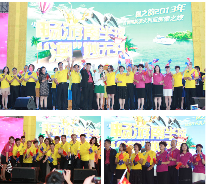 榮耀與激情碰撞,成功與收獲交匯。在綠之韻平臺上,從來都不缺乏成功圓夢者的身影,十周年慶典之際,又有一群夢想者颯爽英姿,斬獲榮光。2013年綠之韻營銷精英澳洲旅游歡送儀式在發(fā)布會上隆重舉行歡送儀式。董事常務(wù)副總裁勞嘉宣讀嘉獎令,并為即將啟程澳洲旅游的家人們送上了誠摯的祝福。