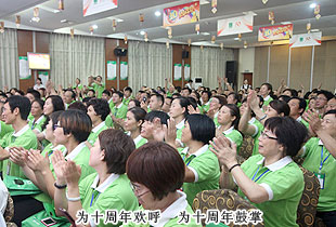 綠之韻十周年慶典總指揮、總裁助理方彥雄在致辭中表示:“十周年,是綠之韻一個新的起點。在這十年,我們因為相信選擇了綠之韻,因為夢想加入了綠之韻。在這十年中,我們肩負企業(yè)責任和歷史使命,歷經(jīng)風雨和挫折,揮灑汗水和淚水,在胡國安董事長的引領(lǐng)下不斷造夢、逐夢和圓夢。從2003年,綠之韻肇始、發(fā)軔,到2013年,綠之韻蓄勢、崛起。十年彈指一揮間,我們匯集了各路精英人杰,創(chuàng)造了‘綠之韻’這個卓越的品牌和事業(yè)平臺,幫助成千上萬心懷創(chuàng)業(yè)初衷、渴望走向成功的普通人走上了夢想的舞臺,收獲了健康、快樂和幸福,實現(xiàn)了自己的人生價值。2013年,是綠之韻永續(xù)經(jīng)營、永遠創(chuàng)業(yè),全面大踏步邁入大健康產(chǎn)業(yè)的發(fā)展元年。未來十年,只要我們秉承“水”的精神,統(tǒng)一思想認識、統(tǒng)一目標指向、統(tǒng)一行動步伐,不斷地創(chuàng)新、突破、跨越,就會取得比過去的十年更加輝煌的成就!”