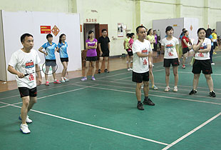 2013年6月6日,綠之韻集團(tuán)第六屆員工羽毛球賽最后一天比賽在長(zhǎng)沙祥云羽毛球俱樂(lè)部激烈上演。在歷經(jīng)近一個(gè)月激烈角逐后,選手們個(gè)個(gè)都卯足了勁,使出渾身解數(shù)向勝利發(fā)起最后沖擊。最終,本屆羽毛球比賽男雙、女雙、混雙、男單、女單及團(tuán)體全部決出冠軍,和諧隊(duì)、嘉冕隊(duì)、KING隊(duì)分列冠亞季軍,友誼賽圓滿落幕。