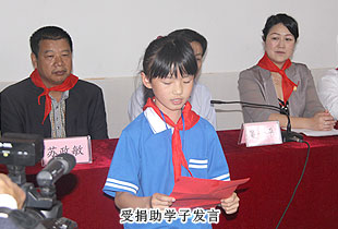 初夏的雨水,濕潤了洞陽大地;真情的幫扶,溫暖了困難學(xué)生的心窩。儀式上,首先由工業(yè)園實驗小學(xué)學(xué)生代表為各位代表和愛心人士佩戴紅領(lǐng)巾。鮮艷的紅領(lǐng)巾,是孩子們心目中最為珍貴和圣潔的禮物,凝聚著孩子們濃濃的感激之情和感恩之心。隨后,工業(yè)園實驗小學(xué)羅校長致歡迎辭,他對各位領(lǐng)導(dǎo)、嘉賓的到來表示歡迎,對各位代表和愛心人士的慷慨解囊和無私援助表示衷心的感謝。