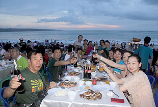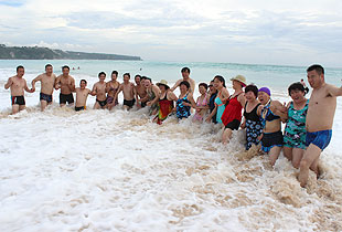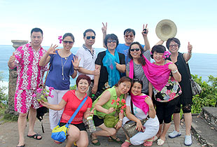 為什么要去海邊?常見的說辭,比如,看海灘,吃海鮮,聽海浪,吹海風(fēng)。再比如,思考人生,探索宇宙,審視過去,展望未來。綠之韻人的理由比較簡(jiǎn)單,尋找快樂,享受事業(yè)帶來的高品質(zhì)生活。南灣,是巴厘島南端最著名的水上活動(dòng)集中區(qū)域。迎著海闊天藍(lán)及潔白柔細(xì)的海灘,體驗(yàn)碧海水藍(lán)天追求感官上的刺激,倘徉在南洋風(fēng)情之中,綠之韻精英們好不愜意。搭乘玻璃底船前往南灣對(duì)岸的海龜島,沿途海風(fēng)徐徐,海中成群的各色熱帶魚,瑰麗多彩的珊瑚礁群,讓大家目不暇接。抵達(dá)海龜島后,大家紛紛與大海龜、大蟒蛇、大蜥蜴拍照留念,欣賞驚心動(dòng)魄、刺激懸疑的斗雞大賽。著名的庫(kù)塔海灘,是巴厘島最美海灘之一。庫(kù)塔海灘是巴厘島上最著名的戲水場(chǎng)所,是最繁華、游人最多的地區(qū)。這里的海灘平坦、沙粒潔白、細(xì)膩,海灘風(fēng)急浪高,不適合泛舟、游泳,但卻是沖浪的好地方,深得尋求刺激的精英們的青睞。每天這里斜陽(yáng)西下的美景也迷倒了無數(shù)游人。在五星級(jí)豪華海景酒店外,一條看不見盡頭的海岸線,一片潔白熱情的沙灘,襯托著齊腰高的一次次海浪,讓綠之韻人找到了釋放快樂的源泉。我們半夜抓海蟹,追海浪,大聲呼喚,堆沙子,曬太陽(yáng),學(xué)游泳,打水仗…好不愜意!另一種不同的享受便是逛街。洋人街,是巴厘島著名的商業(yè)街。盡管街道并不寬,卻張弛有道,熱潮涌動(dòng),卻不喧鬧。抵擋不住名牌的誘惑綠之韻精英們紛紛前往免稅的奢侈品零售店,趁這次難得的假期瘋狂“掃貨”,令人嘆為觀止。