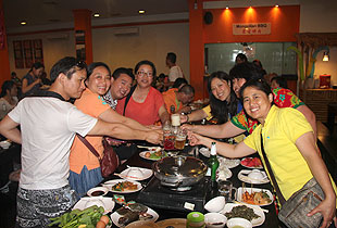 伙伴們說最享受莫過于此。巴厘島的SPA是世界相當(dāng)著名的。在皇家私人海灘,一個(gè)休閑國(guó)度對(duì)于舟車勞頓的我們來說恍如天堂,靜謐舒適的時(shí)尚空間內(nèi),細(xì)極之處都流淌著巴厘島民族風(fēng)俗特色的點(diǎn)睛之筆。這是一種結(jié)合五官的松弛法,講求按摩時(shí)環(huán)境、香熏、音樂,并利用古老的按摩手法和和各式周到的服務(wù)來達(dá)到真正的放松,巴厘島獨(dú)特的天然香油能讓皮膚得到精心呵護(hù)。巴厘島SPA自然受到了綠之韻團(tuán)員的特別關(guān)注和青睞。在一系列護(hù)理后,利用熱水淋至身體的每寸肌膚,達(dá)到另一種按摩的效果,再舒服地泡在盛滿海鹽和花瓣的溫水池內(nèi),感受和大自然相融的感覺。結(jié)束后,大家再來一杯熱熱的姜茶,仿佛享受著與昔日帝王般的尊貴。全套身體護(hù)理做下來,大家內(nèi)心油然而生一種受到皇室待遇的精致呵護(hù)的感覺,深味到了浪漫巴厘島帶來的無限悠閑和樂趣,兩個(gè)小時(shí),每一處都是風(fēng)情、每一處都是享受,尊崇的服務(wù)深入人心!