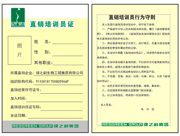 直銷培訓(xùn)員證樣本